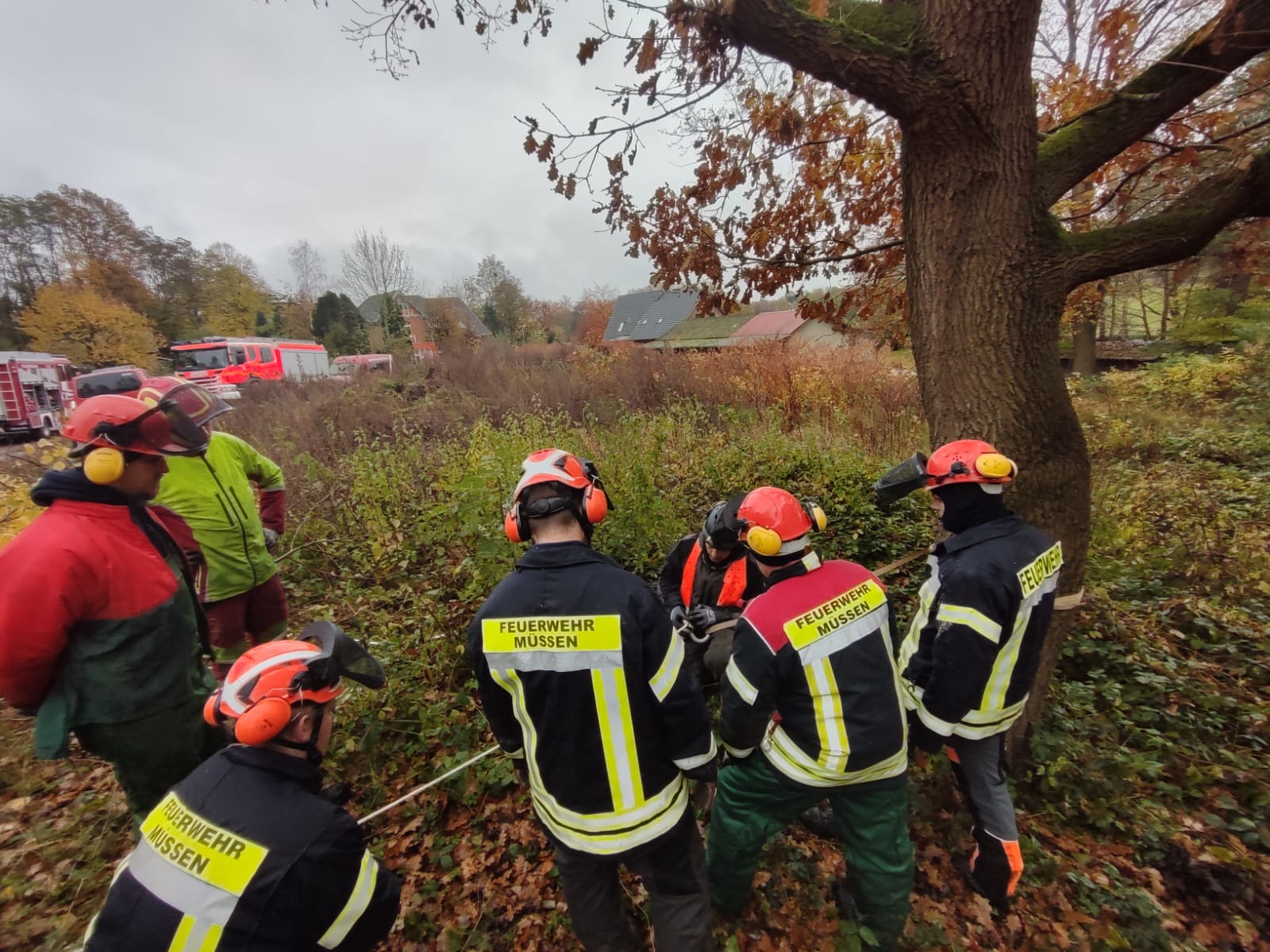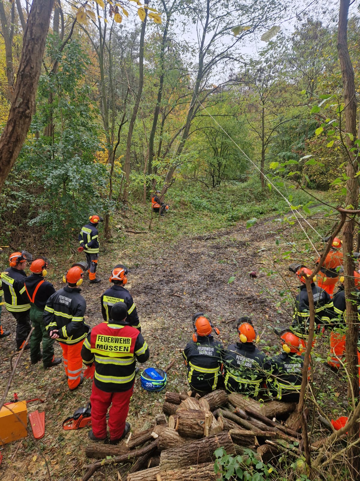 Über drei Tage, vom 9. bis 11. November, vertieften Feuerwehrleute aus Müssen, Bergedorf und Boberg ihre Fähigkeiten im Umgang mit Kettensägen. Auf einem Gelände in der Nähe des Bahnhofs bot sich die Möglichkeit, intensiv an Themen wie Baumfällung und Sturmschadensbeseitigung zu arbeiten.
