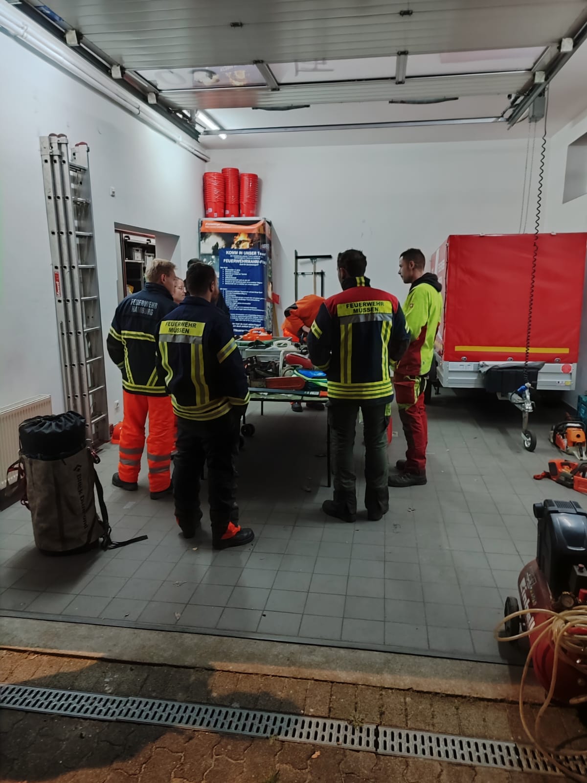 Die Idee, die örtlichen Gegebenheiten für praxisnahe Schulungen zu nutzen, entwickelte sich in Zusammenarbeit mit den Feuerwehren Bergedorf und Boberg zu einem dreitägigen Workshop. Dieser fand unter der Leitung der Wehrführungen von Müssen und Bergedorf am Donnerstag und Freitag statt.